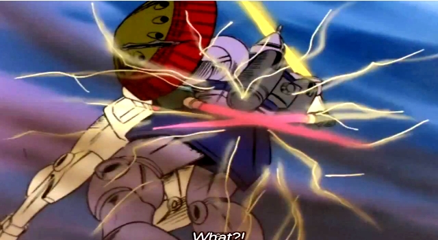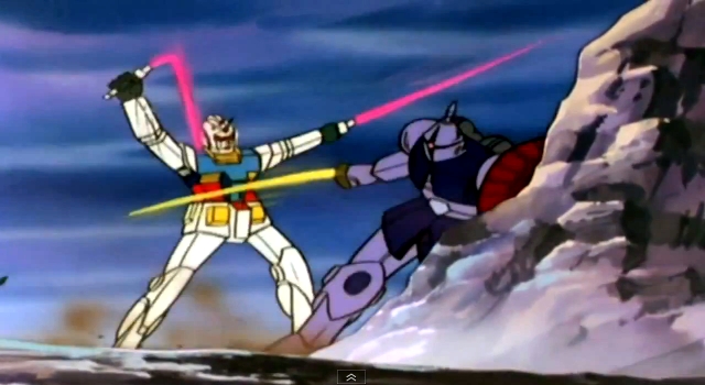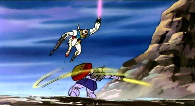 劇場版、機動戦士ガンダム(めぐりあい宇宙編)ではカットされてしまったガンダム(アムロ・レイ)とギャン(マ・クベ)の戦い。