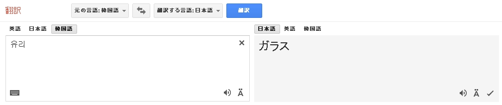 試しにユリのハングル表記、유리をGoogleで翻訳してみる。