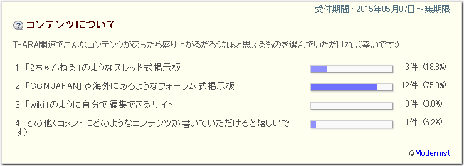 アンケートを設置した翌日の正午、結果を見てみたんですが、票数は「2票」でした{XDDDD