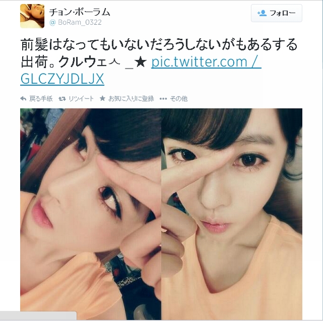 앞머리는 있다가도 없는거고 없다가도 있는거여.. 쿠뢧_ ★ pic.twitter.com/GLCZYJDLJX— Jeon Bo Ram (@BoRam_0322) 2014, 7月 8