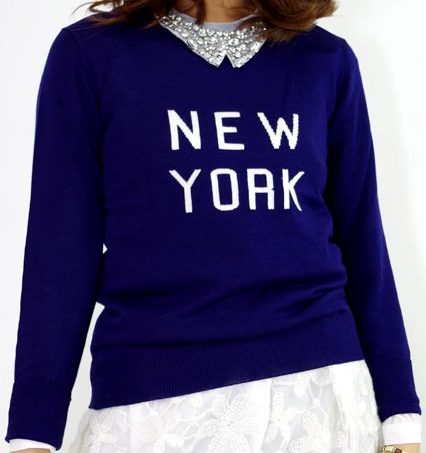 フロントにスリットが入ったハイ・ウエストのペンシル・スカートに、ネイビーのニットをタック・インして着こなしてますな~^^