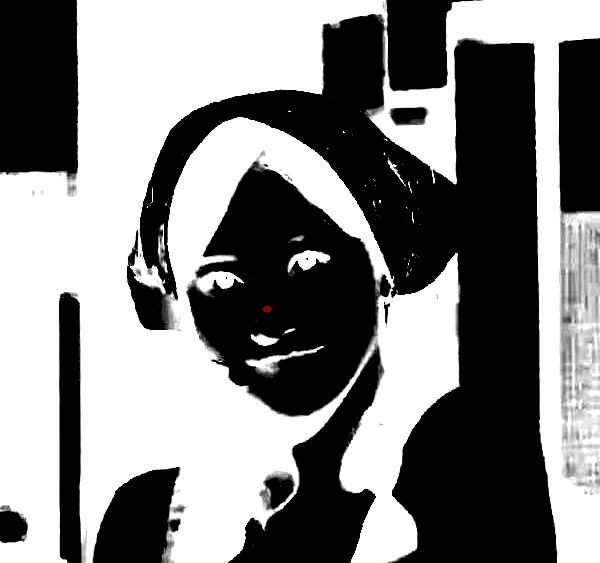 先ずは↓に貼った画像の鼻の辺りの「赤い点」の部分を30~40秒ほど集中してずっと見てください。