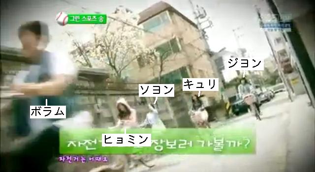 この前のシーンでも、キュリとボラム、ヒョミンとジヨンは自転車に乗っているのですが、ソヨンが乗ってるカットはありません^^;