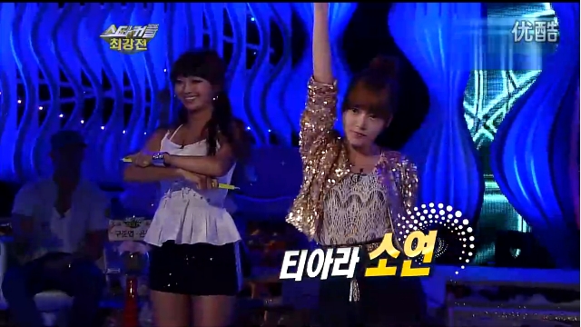 ソヨン、ヒョミンはその通りです。 キャップ被ってるのが4minuteのヒョナ、赤パンツがKARAのスンヨン、 フードTは4minuteのだれか(^^;)です。 この本番映像のリンクはこちらですが、私はリハーサルの方が格段に好きです。 http://youtu.be/fKg5LqNGd_4