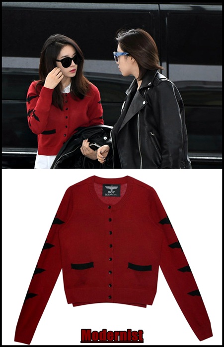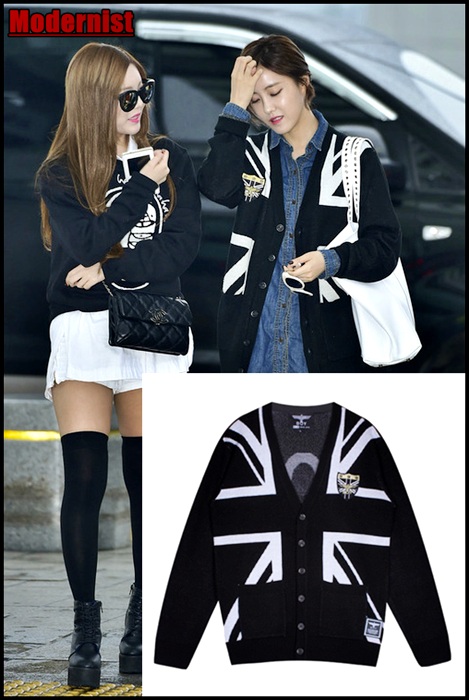 ヒョミンはユニオン・ジャックのカーディガン。