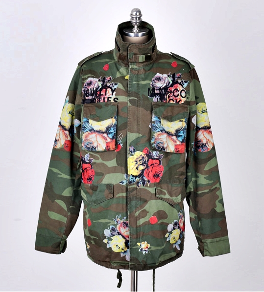 Camo Flower Military Jacketこれ、価格はそれなりにしてますが、韓国製でノー・ブランドっぽいですね・・・。
