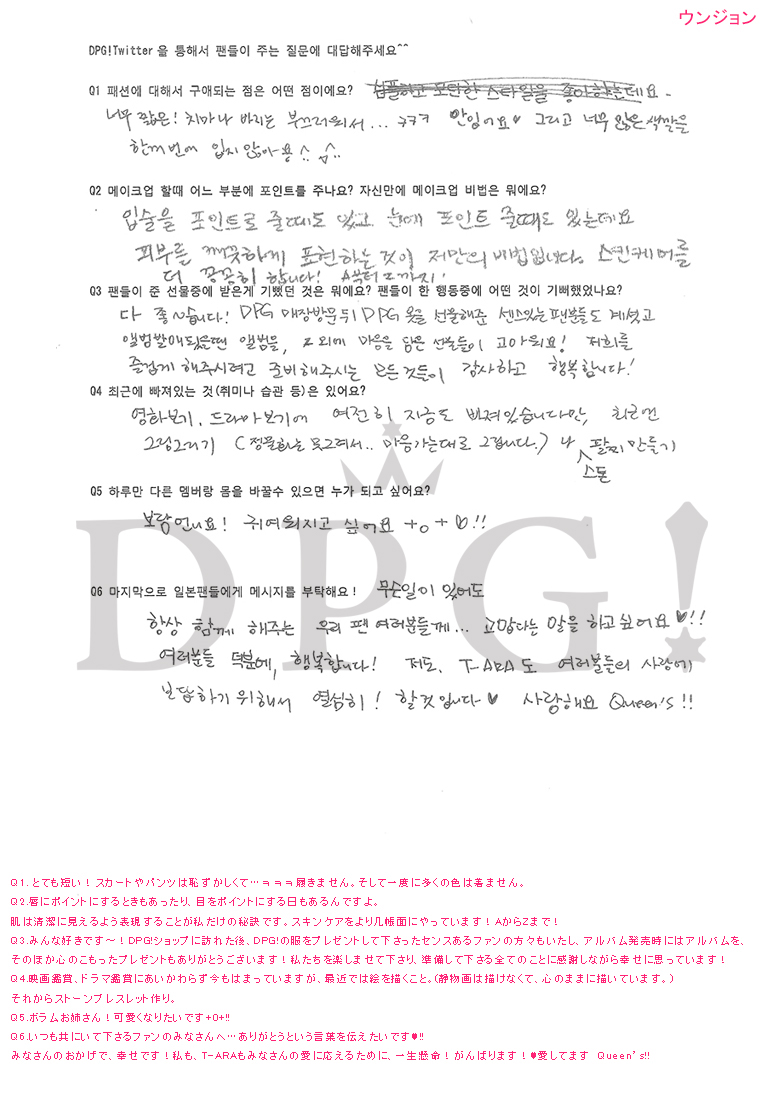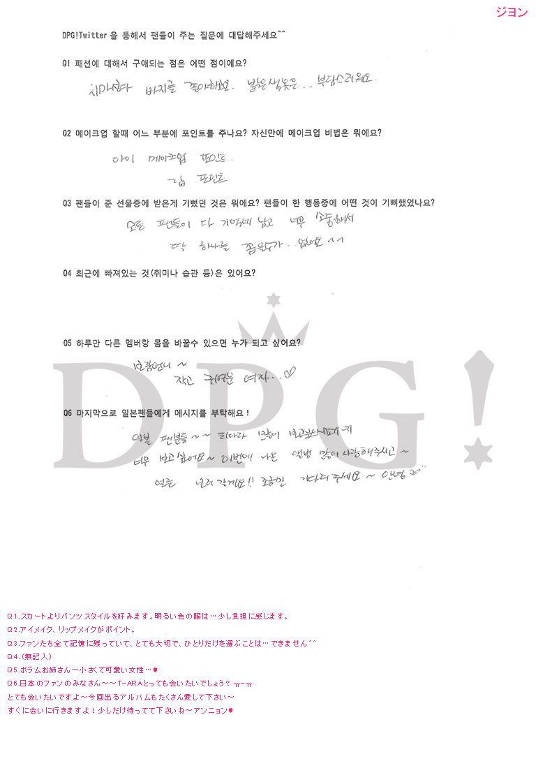 さらに、DPG! 公式Twitterを通じて応募した、T-ARAメンバーへの質問がありましたよね?