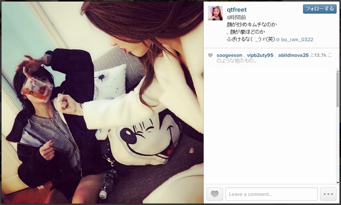 얼굴이 볶음김치 만한건지 얼굴이 주먹 만한건지 까불지마 (`_´)ゞㅋㅋ@bo_ram_0322Qri 큐리(@qtfreet)張貼的相片 於 1月 17, 2015 at 8:57下午 PST 張貼