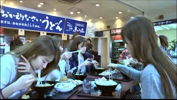なんかシュールだなぁ。T-ARAがうどんのセルフ・サービス(笑)