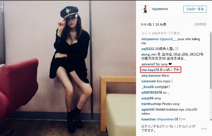 一方、ヒョミンのインスタ・・・