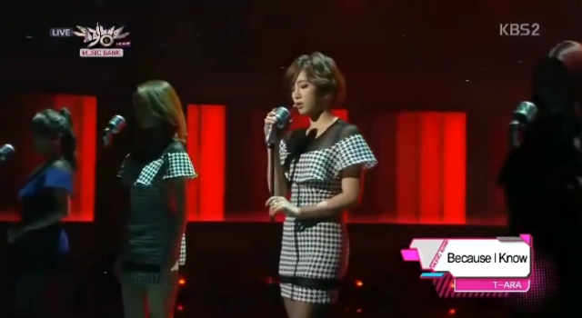 今回の「Because I Know」 の衣装はフリル?の付いたハウンドトゥース柄のタイト目のワンピ=)