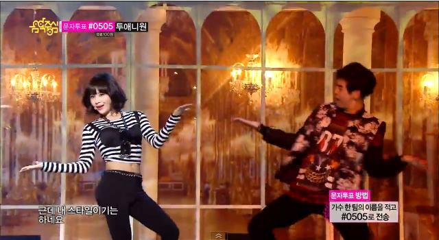 このヒョミンは「ヒゲダンス(懐)」 を踊ってるみたいだな(笑)