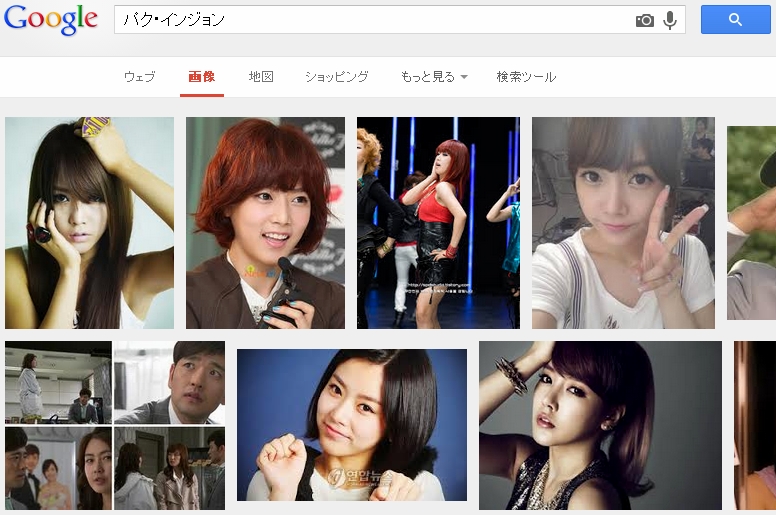 今回は画像検索で、サーチ・ボックスに「パク・インジョン」と入力して検索してみます^^