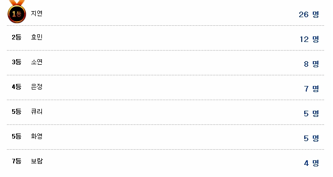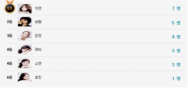 韓国のNATEというサイトに「'ティアラ'のメンバーの中で一番好きなメンバーは?」というアンケートがありました。