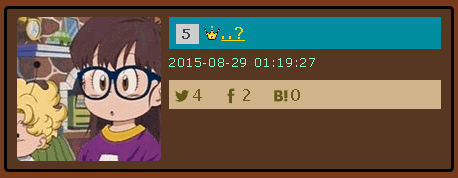 このアラレちゃんの画像{XD、一体誰がUPしたんだ・・・?と思って探りを入れてみると、どうやらUPしたのはヒョミンのようですね:|