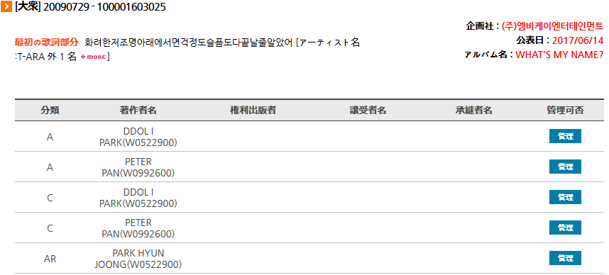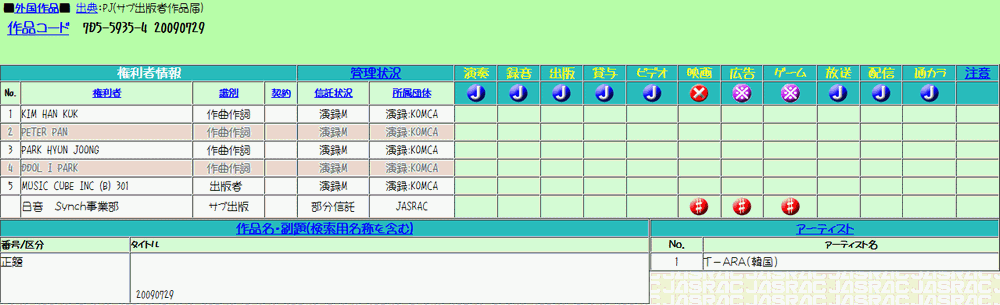 De、結局のところはどうなったのか、ちょっとJASRACのデータベースで調べてみました。