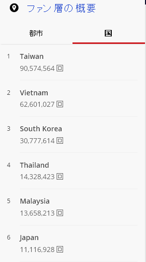 こうやってみると、T-ARAはベトナムや台湾で人気が高いんでしょうかね?:o