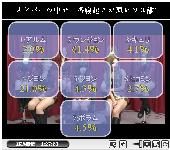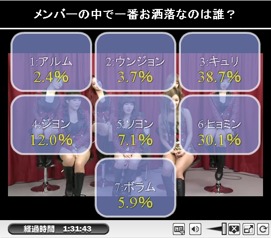 ヒョミンとキュリが接戦!僅差でキュリ^^