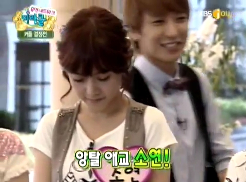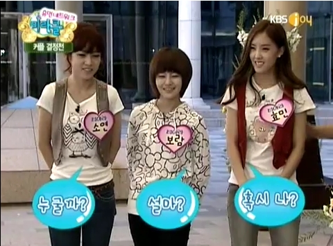 この番組、字幕付きがちょっと見当たらないので内容はわからないのですが、ボラムとソヨンとヒョミンがイトゥク?に対して愛嬌対決を繰り広げています:D