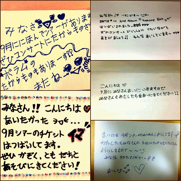 ちなみに次の画像は、他のメンバーの直筆メッセージをまとめたものです。
