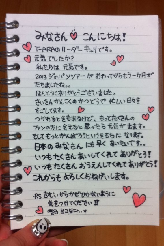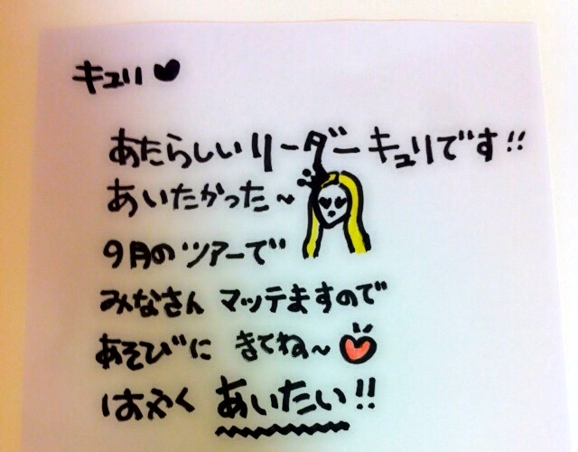さて、次の画像は今年8月にオフィシャル・ブログにUPされたキュリの直筆メッセージです。