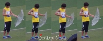 この後、傘を投げつけていますXD コレは傘をなおしている画像ではなく、単に傘で遊んでいる様子の画像です。証拠のFancamも追加で貼っておきます。