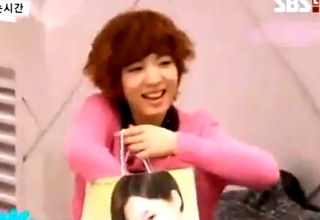 この後、メンバーはウンジョンの顔がプリントされた袋(笑)に入っていた化粧品(?)をそれぞれチョイスし始めます。