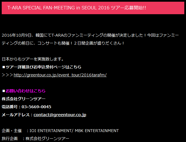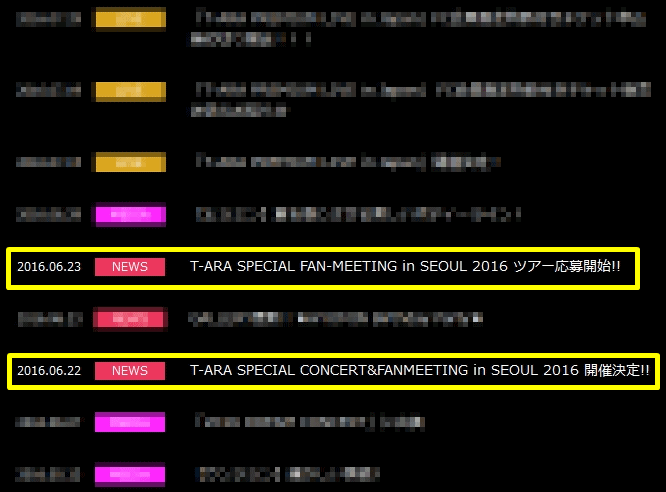 1.6月22日時点の発表では「T-ARA SPECIAL CONCERT & FANMEETING in SEOUL 2016」となっているのに、翌日には「T-ARA SPECIAL FANMEETING in SEOUL 2016」となっている。まぁ、コレに関しては単なるタイトル変更なのかもしれません。あるいは適当(笑)