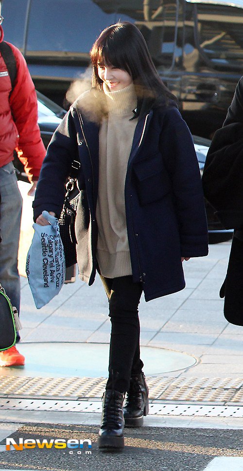 ★ボラムアウターはネイビーのコート。そしてインナーはベージュのタートル・ネック・セーター。リブがCuteですね=)